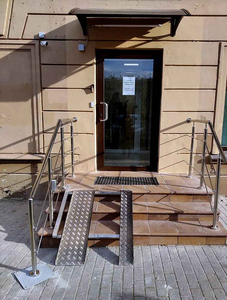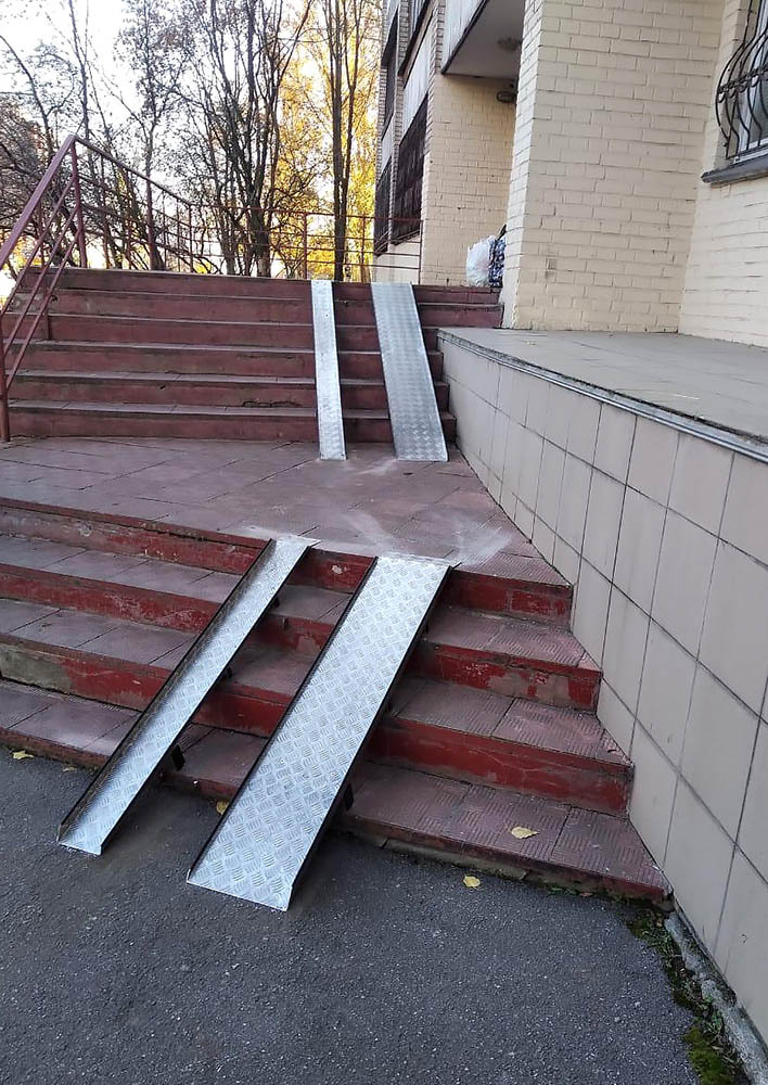 Помимо оборудования для лиц с ограниченными возможностями, наши разработки идеальны для родителей с детскими колясками, что делает повседневные прогулки проще и безопаснее. С правильным пандусом каждый может почувствовать себя уверенно, не задумываясь о подъёмах и препятствиях на своём пути. Алюминиевые пандусы изготавливаются из рифленного алюминия толщиной 3мм. Конструкция пандуса обеспечивает достаточную прочность для использования как детских так и инвалидных колясок., при этом пандус имеет малый вес. Пандус может использоваться как на внутренних так и наружных лестничных маршах. Алюминиевый пандус не подвержен коррозии и на протяжении долгого времени сохранят презентабельный внешний вид. Есть модели стационарного исполнения с креплением к ступеням лестничного марша и откидные пандусы с креплением к стене либо перилам.